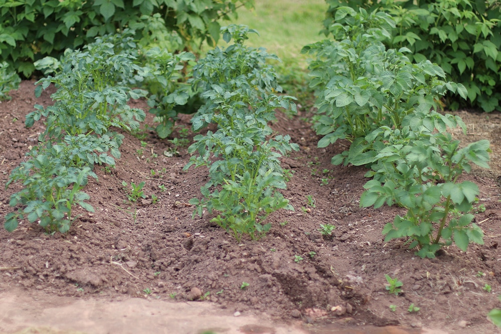 Beim Anhäufeln von Kartoffeln ist der richtige Zeitpunkt wichtig. Wird die Arbeit zu spät in Angriff genommen, ist das Kartoffelkraut so groß, dass es im Weg ist, beim Bilden der Dämme können dann Triebe abbrechen.